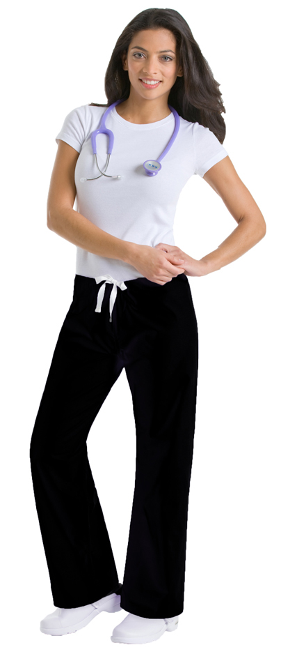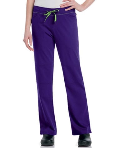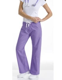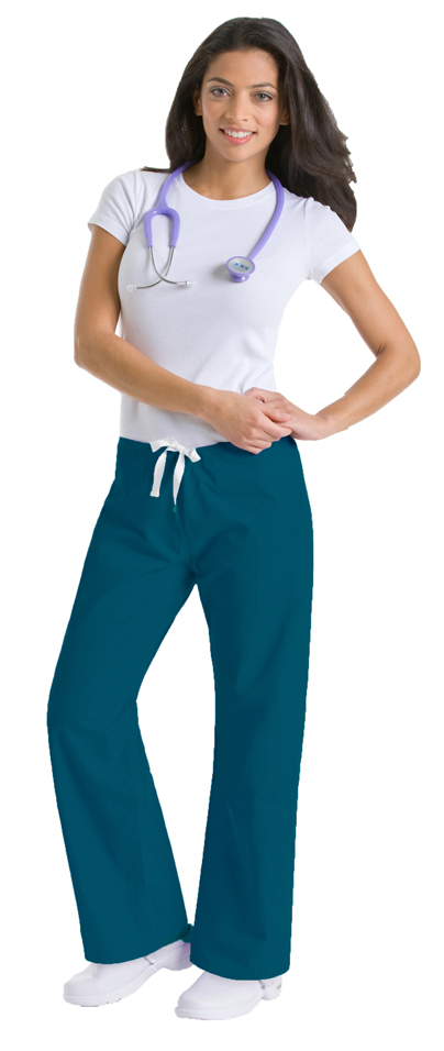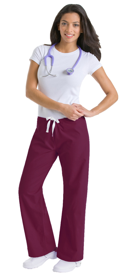 A perennial favorite. Classic boot cut without side seam for smooth silhouette. Sits comfortably at the natural waist and adjusts easily with full drawstring. Rounded saddle engineered to fi t curves while staying relaxed through thigh and leg for all-day comfort. 65% polyester/35%,combed cotton poplin,colors 60% cotton/40% polyester.31 inseam.