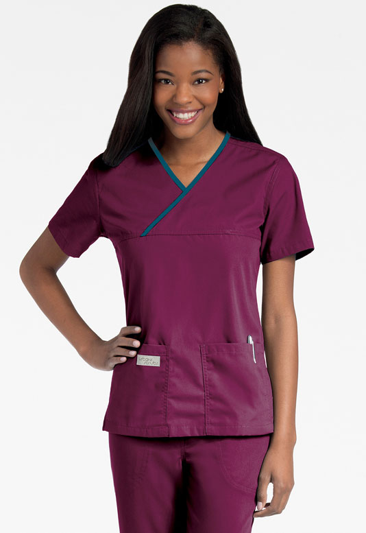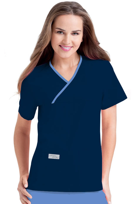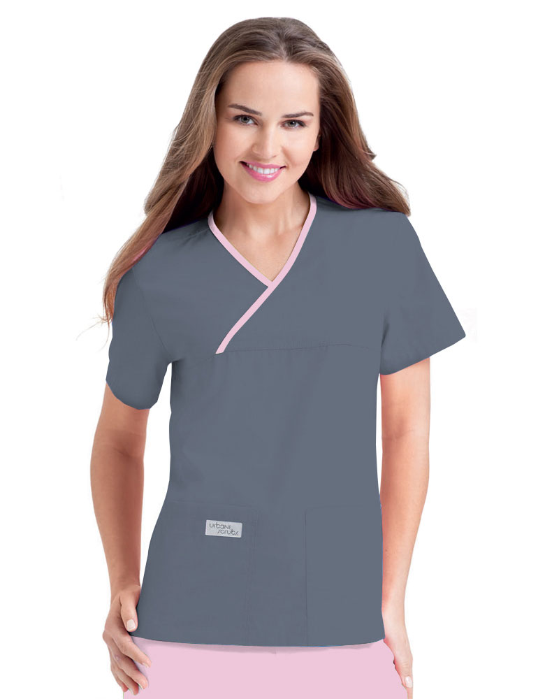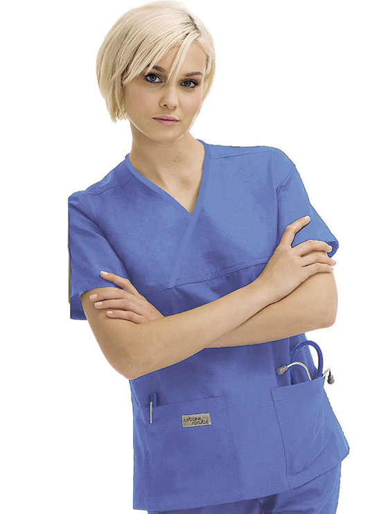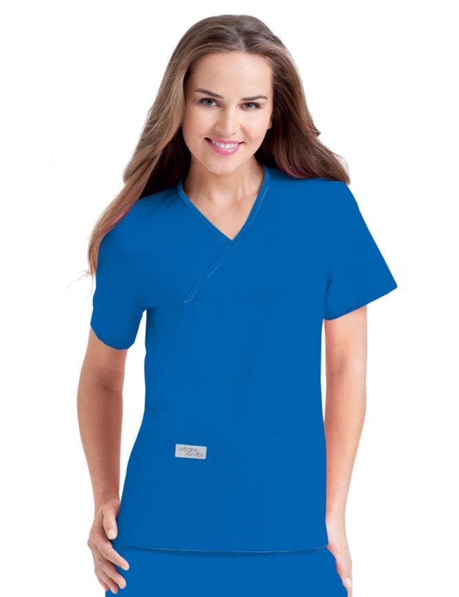 Womens Double Pocket Crossover Scrub Top by Urbane